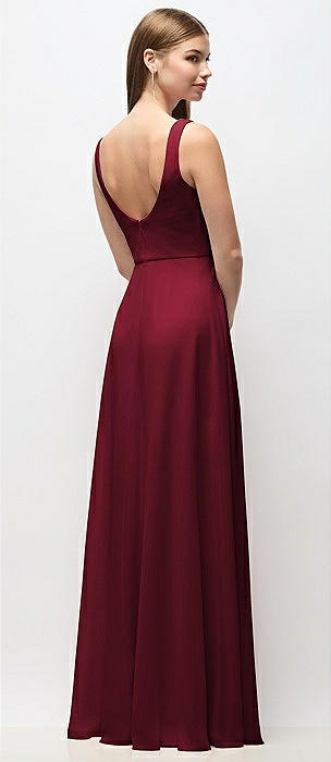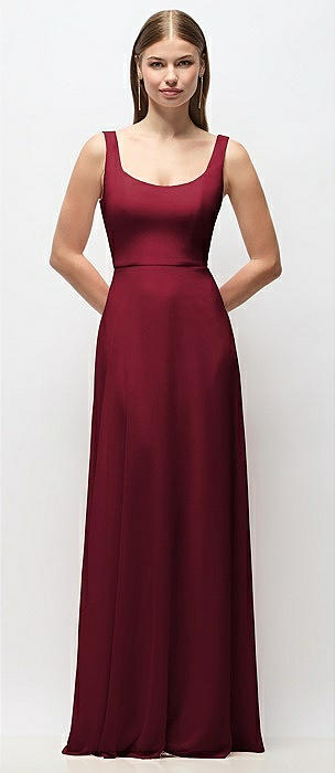 Scoop Neck Tank Strap Chiffon Maxi Dress in burgundy