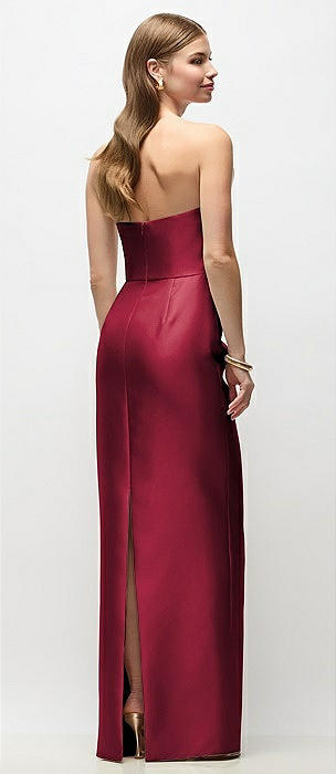Strapless Cuff Satin Maxi Dress with Column Skirt & Back Bow in burgundy