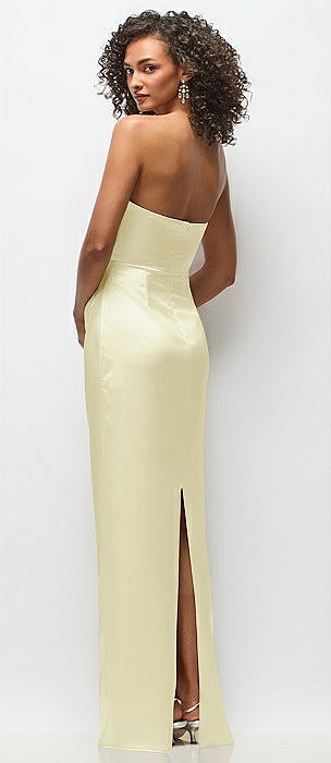 Strapless Cuff Satin Maxi Dress with Column Skirt & Back Bow in butter yellow