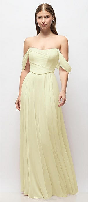 Off-the-Shoulder Basque Corset Chiffon Maxi Dress in butter yellow