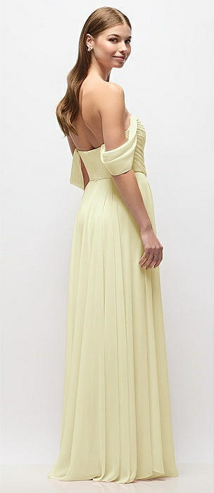 Chiffon Corset Maxi Dress with Removable Off-the-Shoulder Swags in butter yellow