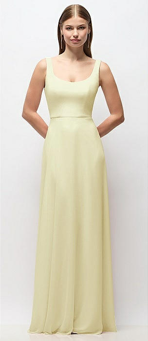 Scoop Neck Tank Strap Chiffon Maxi Dress in butter yellow