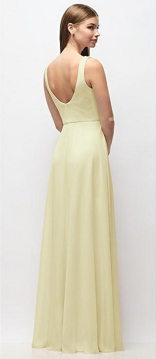 Plunge Neckline Bow Shoulder Empire Waist Chiffon Maxi Dress in butter yellow