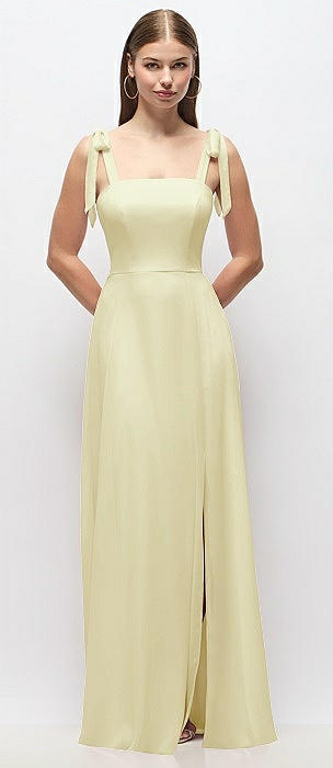 Tie-Shoulder Chiffon Maxi Dress with Front Slit in butter yellow