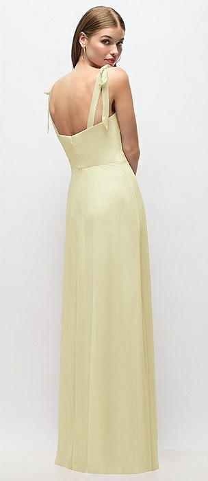 Tie-Shoulder Bustier Bodice Ruffle-Hem Maxi Dress in butter yellow