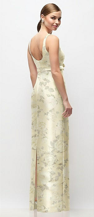 Floral Bateau Neck Satin Column Maxi Dress with Exaggerated Tail Bow Straps in butter yellow floral