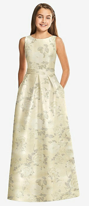 Floral Bateau Neck Maxi Junior Bridesmaid Dress with Pockets