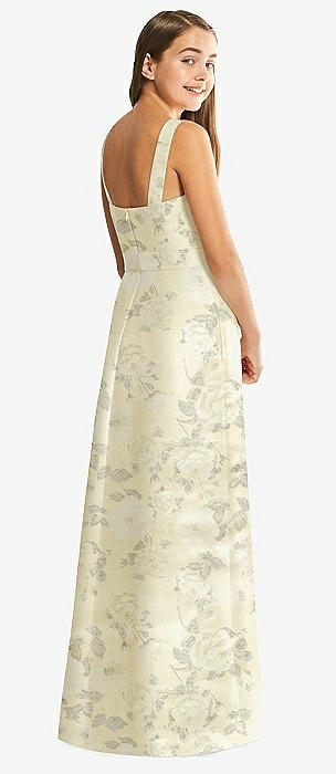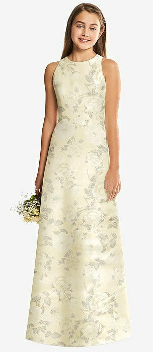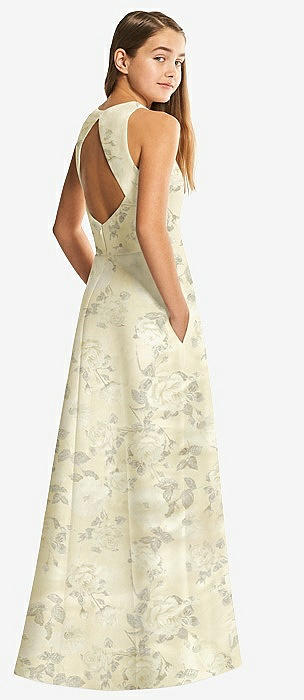 Floral Sleeveless Open-Back Satin Junior Bridesmaid Dress