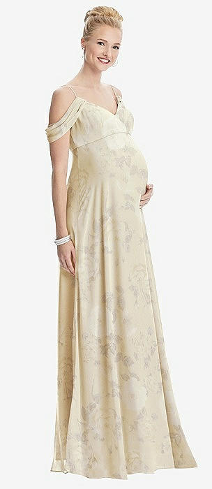Draped Cold-Shoulder Chiffon Maternity Dress