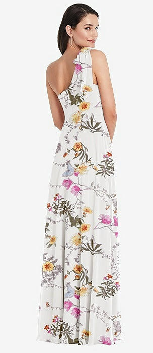 Chiffon One-Shoulder Maxi Dress with Circle Skirt in butterfly botanica ivory
