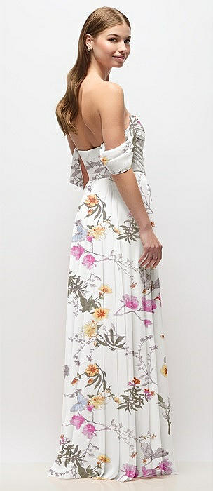 Chiffon Corset Maxi Dress with Removable Off-the-Shoulder Swags in butterfly botanica ivory