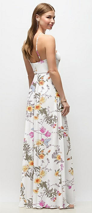 Convertible Ruffle Strap Chiffon Maxi Dress with Full Circle Skirt in butterfly botanica ivory