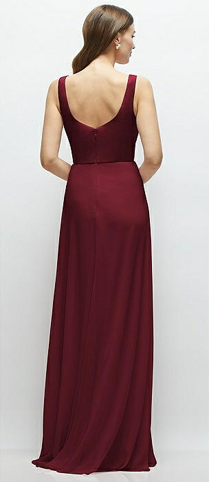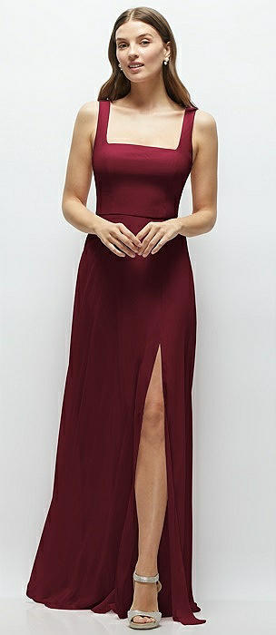 Square Neck Chiffon Maxi Dress with Circle Skirt in cabernet