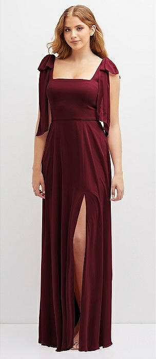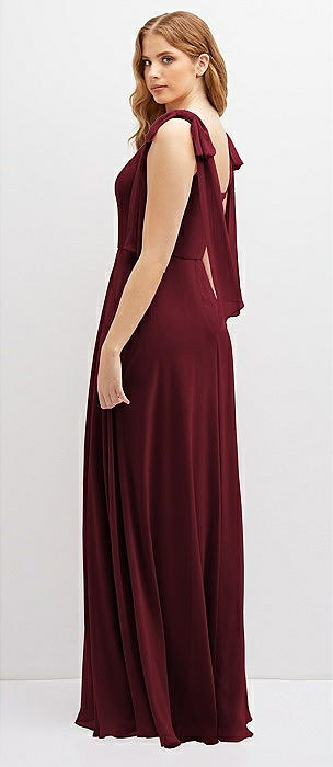 Bow Shoulder Square Neck Chiffon Maxi Dress in cabernet