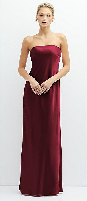 Strapless Scoop Back Maxi Dress with Front Slit in cabernet