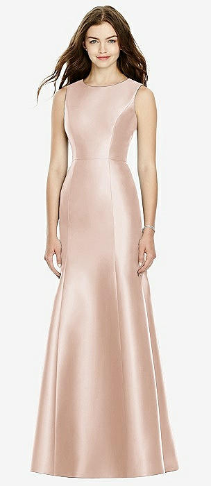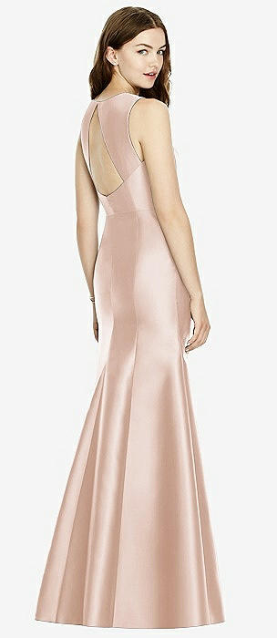 Sleeveless Satin Trumpet Gown with Bow at Open-Back in cameo