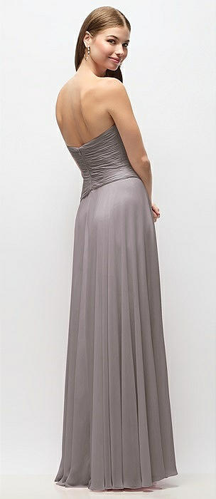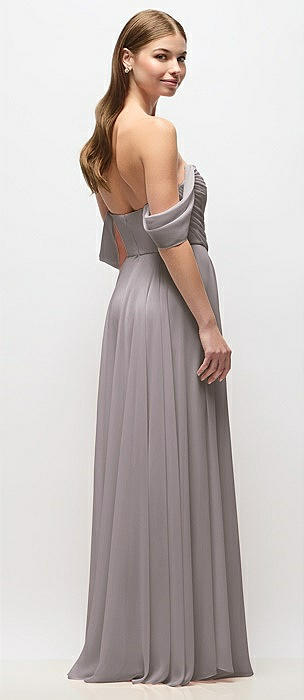Strapless Pleated Surplice Chiffon Maxi Dress with A-Line Skirt in cashmere gray
