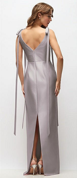 Bateau Neck Satin Column Maxi Dress with Exaggerated Tail Bow Straps in cashmere gray