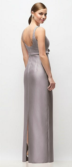 Scoop Neck Satin Column Maxi Dress with Bow at Empire Waist in cashmere gray