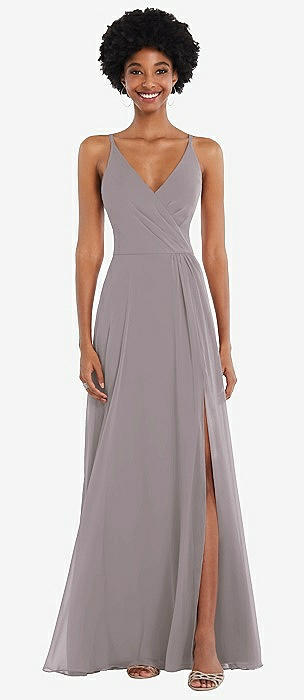 Faux Wrap Criss Cross Back Maxi Dress with Adjustable Straps in cashmere gray