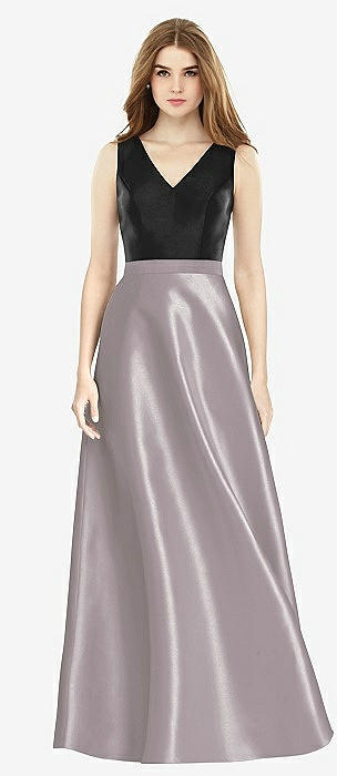 Sleeveless A-Line Satin Dress with Pockets in cashmere gray