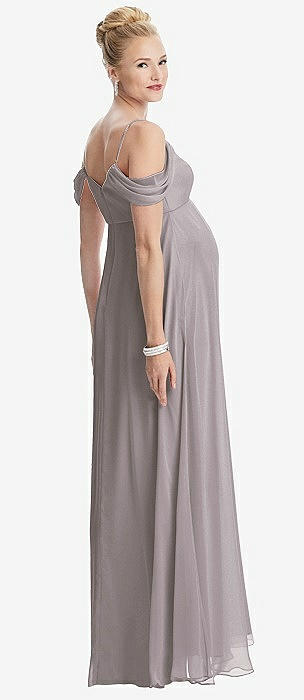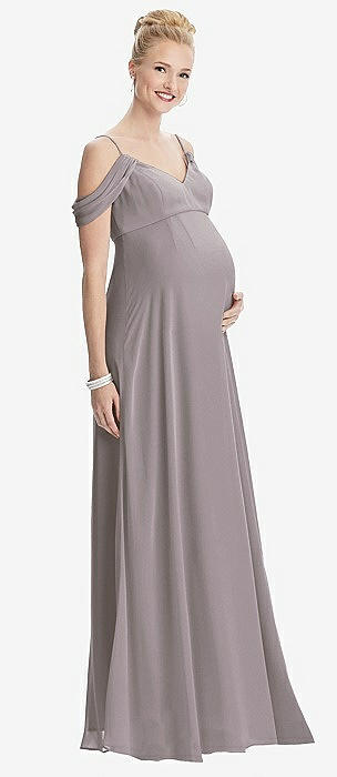 Draped Cold-Shoulder Chiffon Maternity Dress in cashmere gray