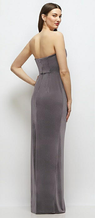 Strapless Corset Bodice Velvet Column Maxi Dress in caviar gray
