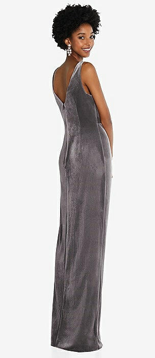 Velvet Maxi Dress with Shirred Bodice and Front Slit in caviar gray