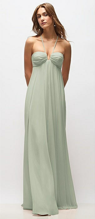 Empire Waist Chiffon Halter Maxi Dress with Convertible Spaghetti Straps in celadon