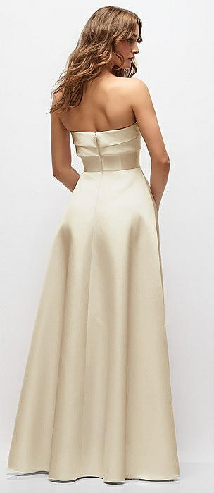 Strapless Draped Bodice Stretch Satin Column Maxi Dress in champagne