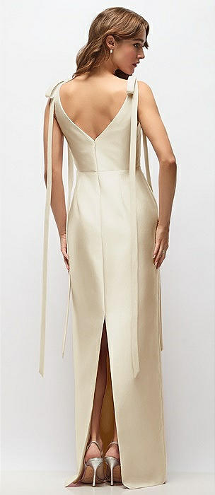 Bateau Neck Satin Column Maxi Dress with Exaggerated Tail Bow Straps in champagne