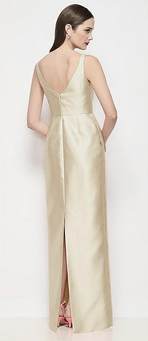 Bateau Neck Satin Maxi Dress with Pleated Column Skirt in champagne