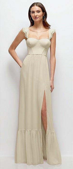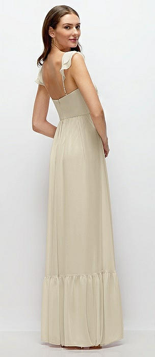 Ruffle Strap Chiffon Bustier Maxi Dress with Ruffle Hem A-Line Skirt in champagne