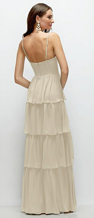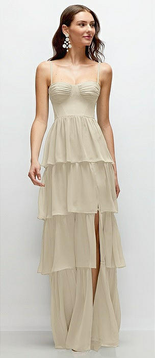 Bustier-Style Chiffon Tiered Ruffle Maxi Dress with Adjustable Straps in champagne