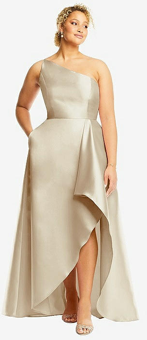 One-Shoulder Draped Skirt Satin Trumpet Gown in champagne