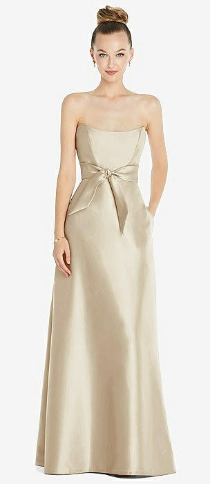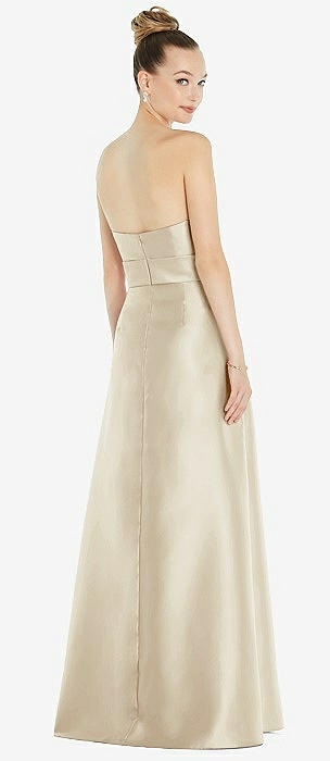 Basque-Neck Strapless Satin Gown with Mini Sash in champagne