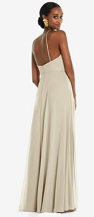 Diamond Halter Maxi Dress with Adjustable Straps in champagne