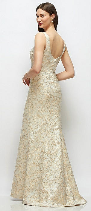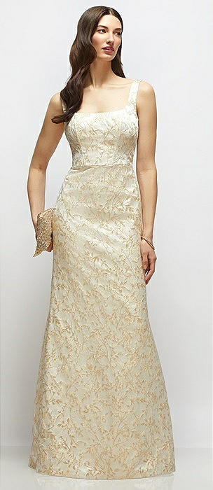 Champagne Floral Brocade Square Neck Maxi Dress with Trumpet Skirt in champagne filigree