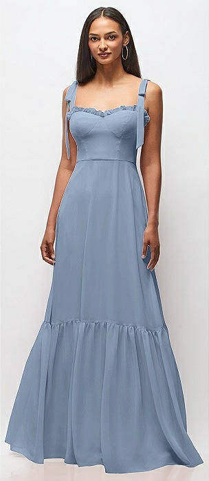 Cloudy blue bridesmaid dresses are a total vibe, so it's easy to see why brides can't get enough of this effortlessly chic shade. This dreamy, dusty blue color effortlessly blends romance and sophistication—and photographs like a dream. Plus, it's universally flattering. Your crew will feel confident and gorgeous in cloudy blue dresses, no matter the wedding vibe or season.