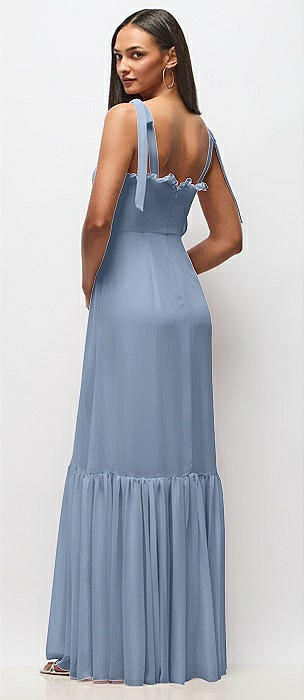 Tie-Shoulder Chiffon Maxi Dress with Front Slit in cloudy
