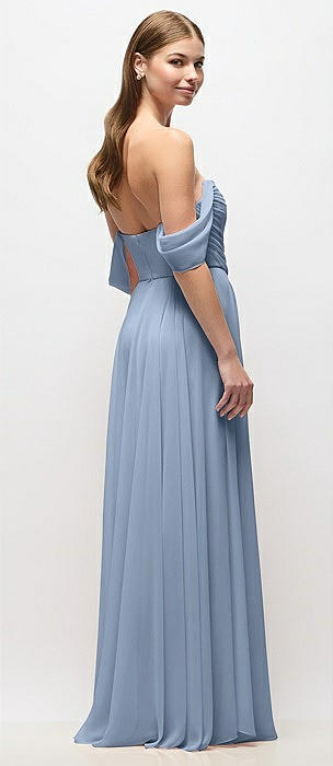 Strapless Chiffon Maxi Dress with Asymmetrical Ruched Drop Waist in cloudy