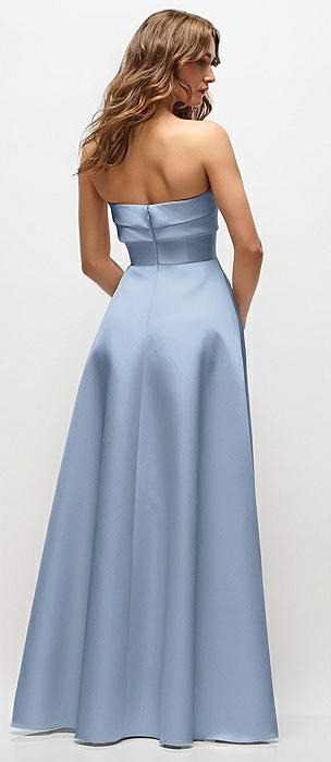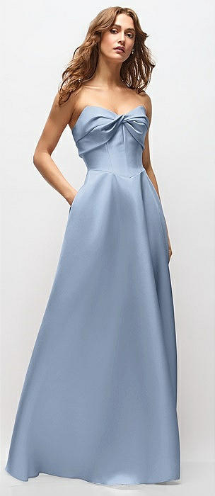 Strapless Twist Cuff Neck Satin Maxi Dress with Basque-Waist & Full Skirt in cloudy
