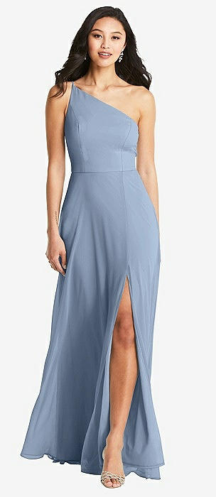 One-Shoulder Draped Chiffon Maxi Dress - Dani in cloudy
