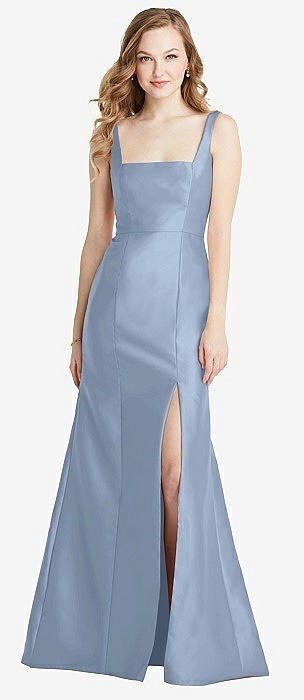 Jewel Neck Bowed Open-Back Trumpet Dress with Front Slit in cloudy