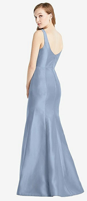 Sleeveless Satin Trumpet Gown with Bow at Open-Back in cloudy