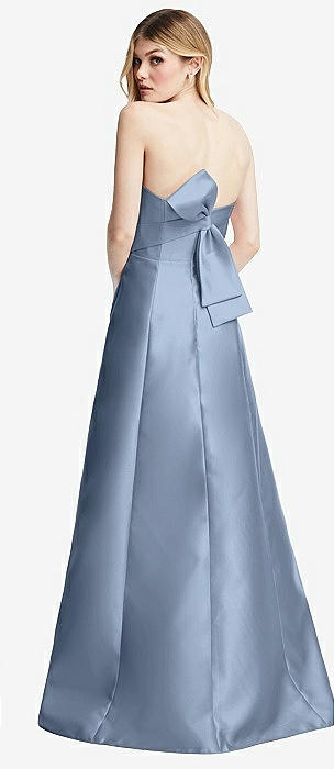 Strapless A-line Satin Gown with Modern Bow Detail in cloudy