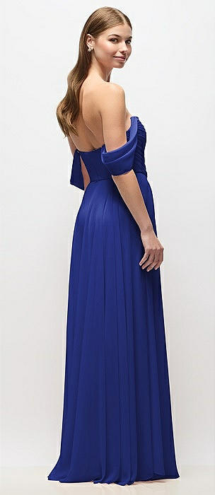 Strapless Chiffon Maxi Dress with Asymmetrical Ruched Drop Waist in cobalt blue