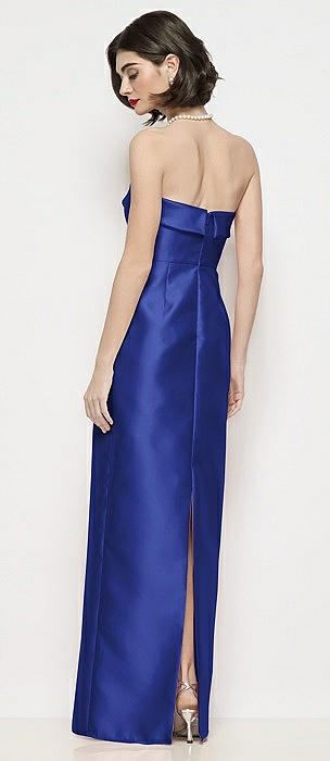 Strapless Cuff Neck Satin Maxi Dress with Column Skirt in cobalt blue