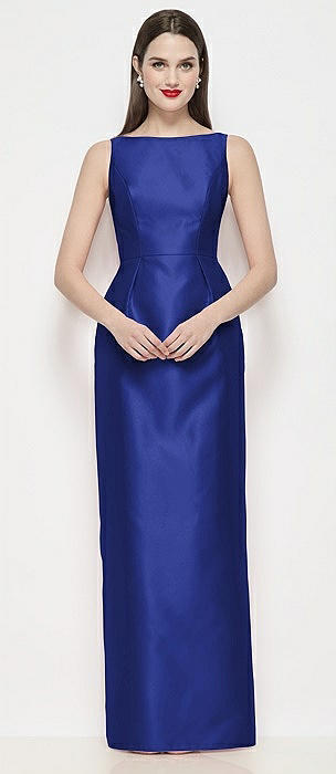 Bateau Neck Satin Maxi Dress with Pleated Column Skirt in cobalt blue