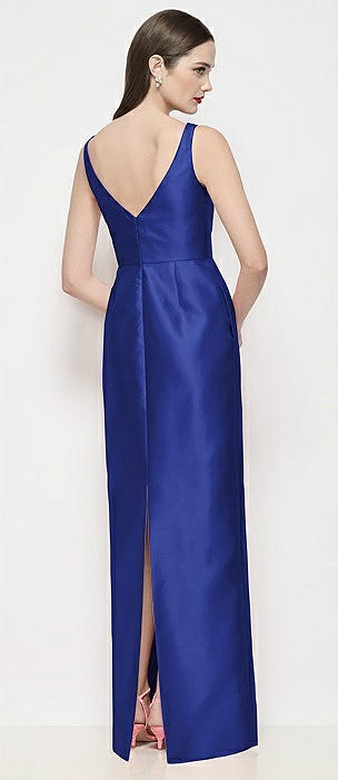 Sleeveless V-neck Satin Maxi Dress with Pleated Skirt in cobalt blue